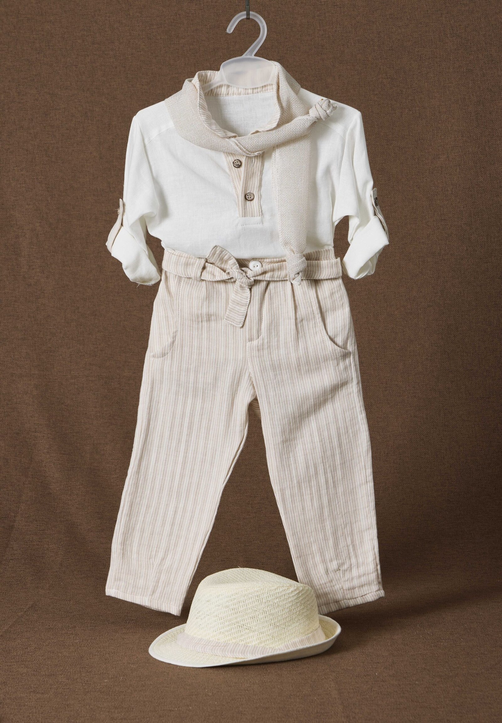 Πουκαμίσα με μαό γιακά και μπεζ λεπτομέρειες από το παντελόνι.
